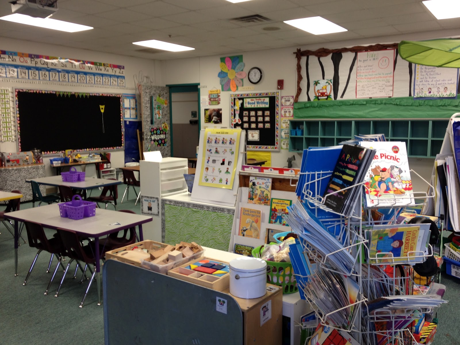 As promised, here are my classroom pics. I have to still take several of my last year charts off of my walls. I was “model classroom” for Kindergarten ELA last week. That means that all of the new teachers come to my room to look and see how I have things set up…nothing fancy. I did leave up many of my charts though so they could see the work I did with my kids. I will be taking most of it down tomorrow so I can have a clean slate for my new babies. I am really excited