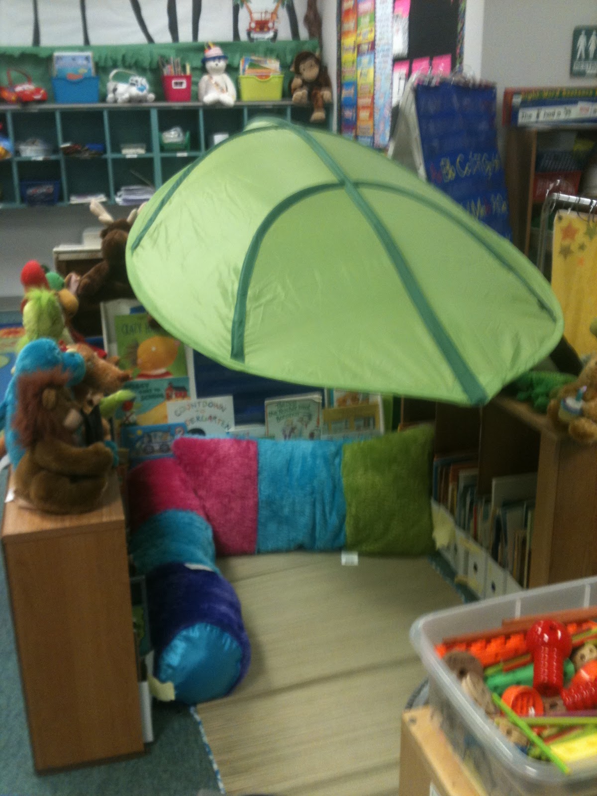 I love your room. Thank you for letting us have a peek at it. You can tell you have worked so hard to make it a wonderful place for children to learn! I have a magnetic board just like yours! I painted mine blue. The children love it.