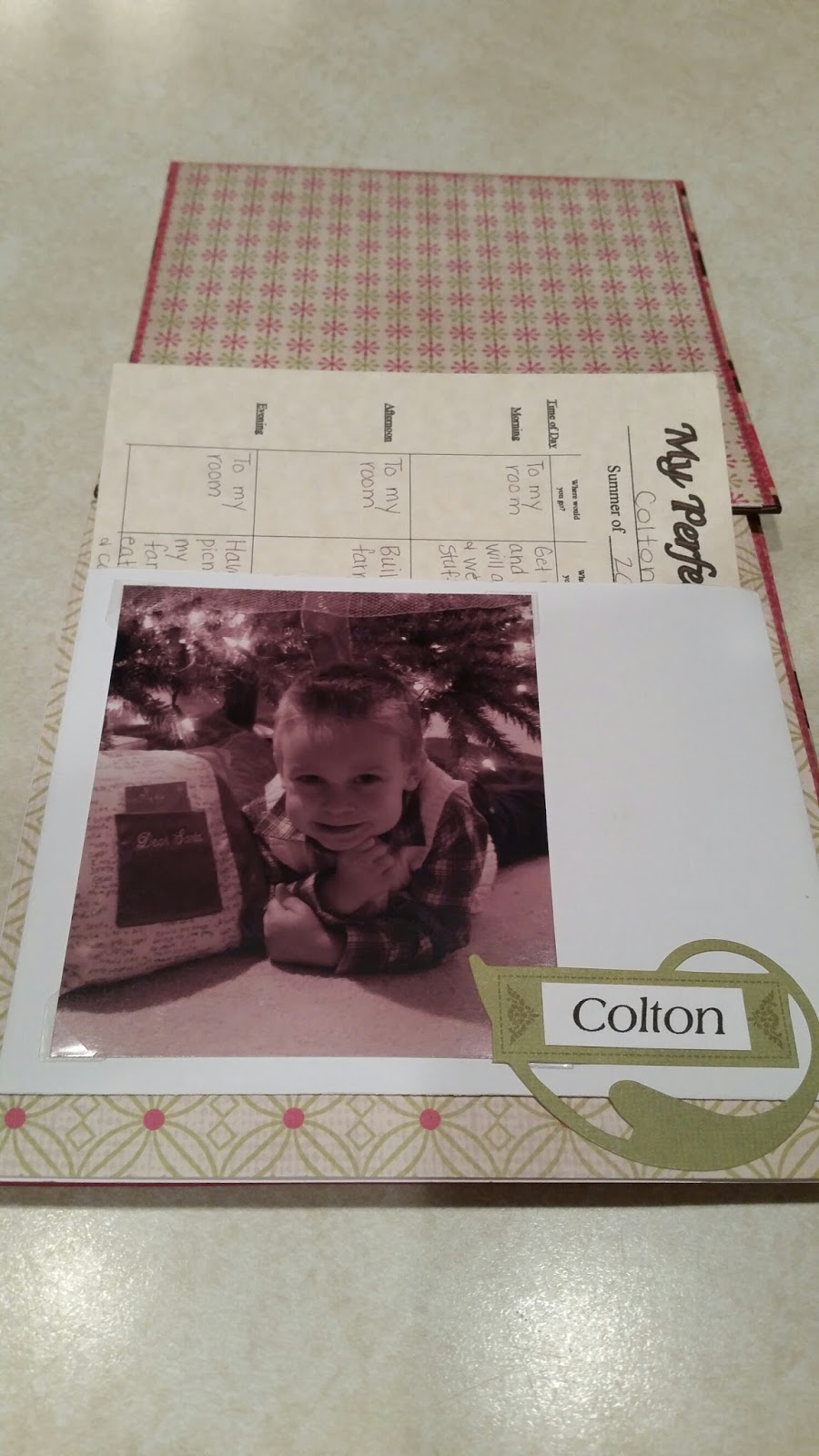So this is how it works in my family. During the first few weeks of summer, we have each family member complete their own “perfect day” card. (We currently just have our kiddos fill them out…but every few years “we” {mom & dad} have filled them out too!) We have each person write down all of their favorite things, the things that they would love to experience packed in one day! (NOTE: This is NOT about going to fancy, expensive places or about buying things. This is about doing the simple things each kid loves, like spending time with their best friends in their favorite places, picking their favorite home-made meals, etc.) We then store each member’s card in his/her envelope on their specially assigned page in our “Gift of a Day” memory book.